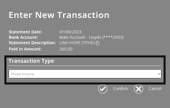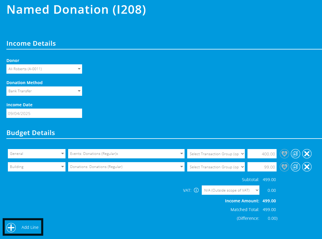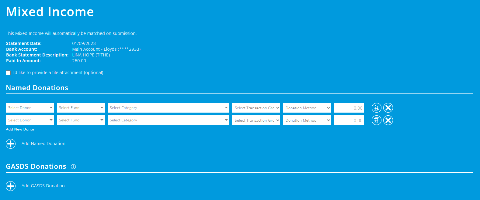 Alternatively, when bank matching, you can click the 'Mixed Income' option in the popup, and split the donation at this point.