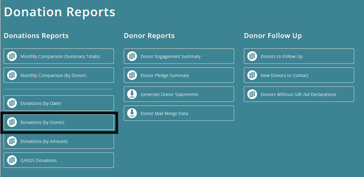 Alternatively, you can visit 'Manage Donors' from the sidebar menu, click on the donor and then click on 'Recent donations by...'