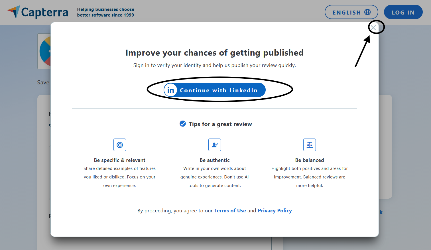 Note: a pop-up will appear. If you have a LinkedIn account, click this option. Otherwise, click the 'close' button at the top right of the pop-up.
